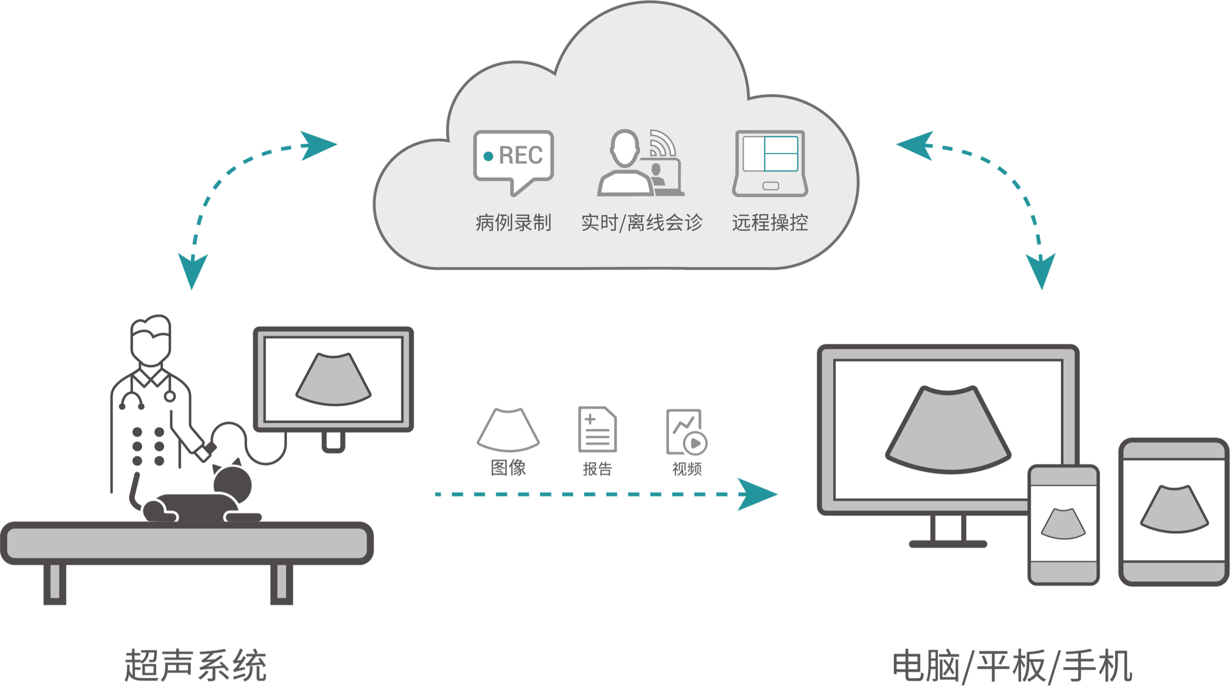 可实现移动端与超声机器快速无线连接,宠物主可下载共享动物超声检查图像,记录动物的生长轨迹。